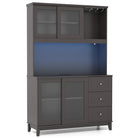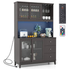 Kitchen Pantry Storage Cabinet Kitchen Hutch with LED lights and Power Outlet-Dark Brown