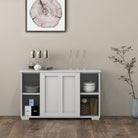 Large Storage Space: Two doors are both slidable which offers great convenience for you to store suitable tableware inside. Two shelves inside enlarge your storage demands. Spacious top for displaying or storing your kitchen tools.