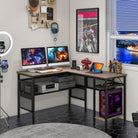 L-Shaped Computer Desk with Charging Station and Adjustable Shelf-Gray