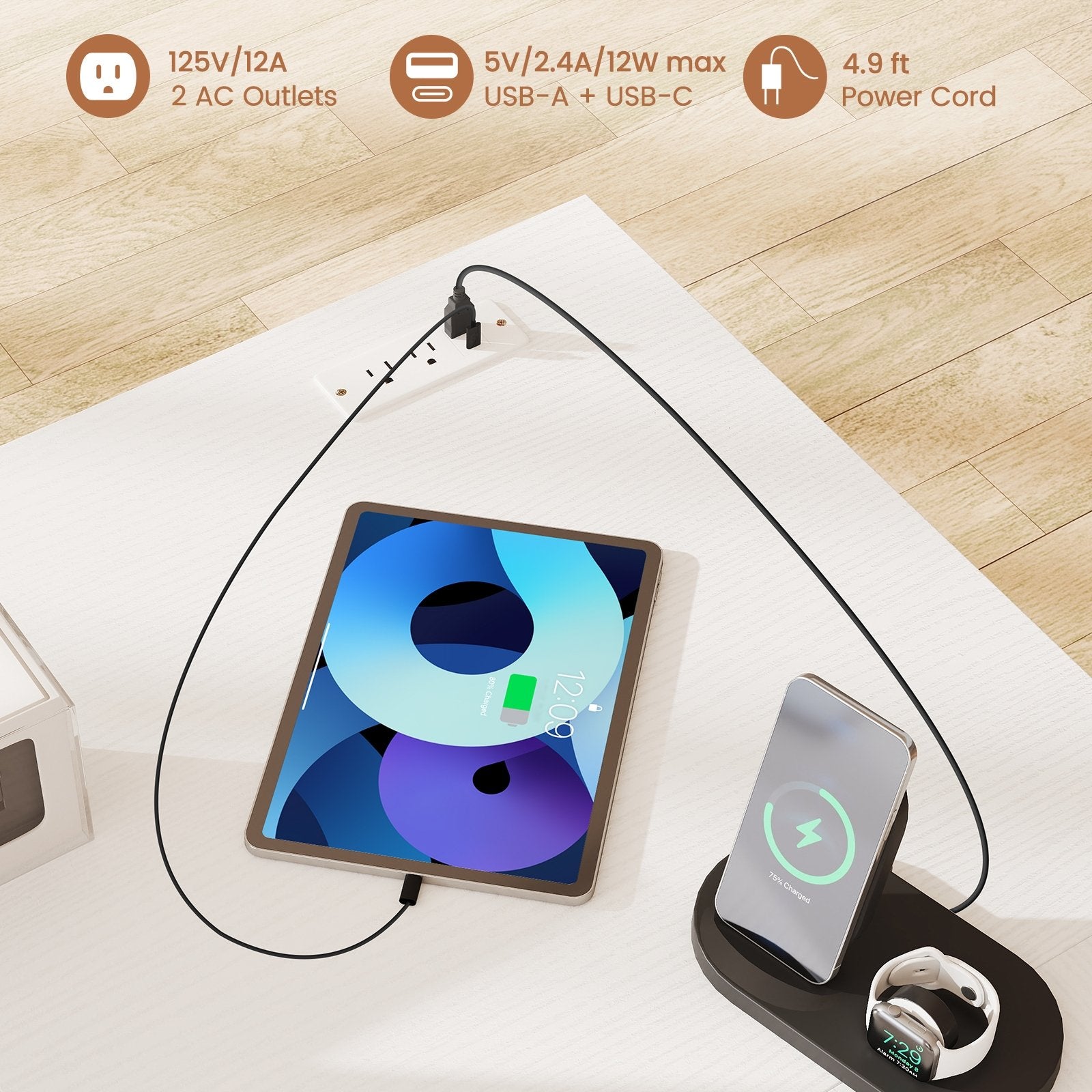 -Built-in power strip for convenient charging