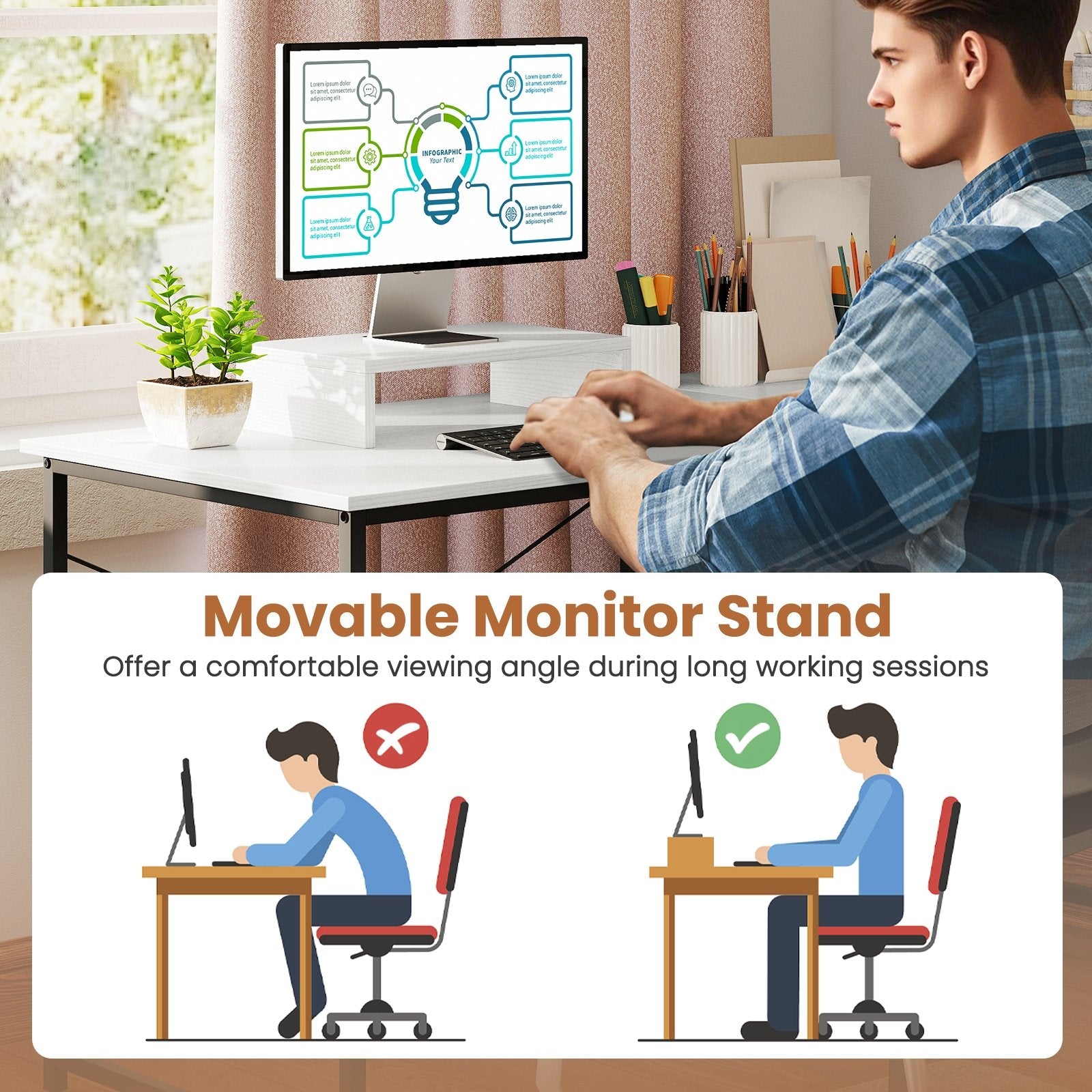 -Offer a comfortable viewing angle during long working sessions