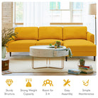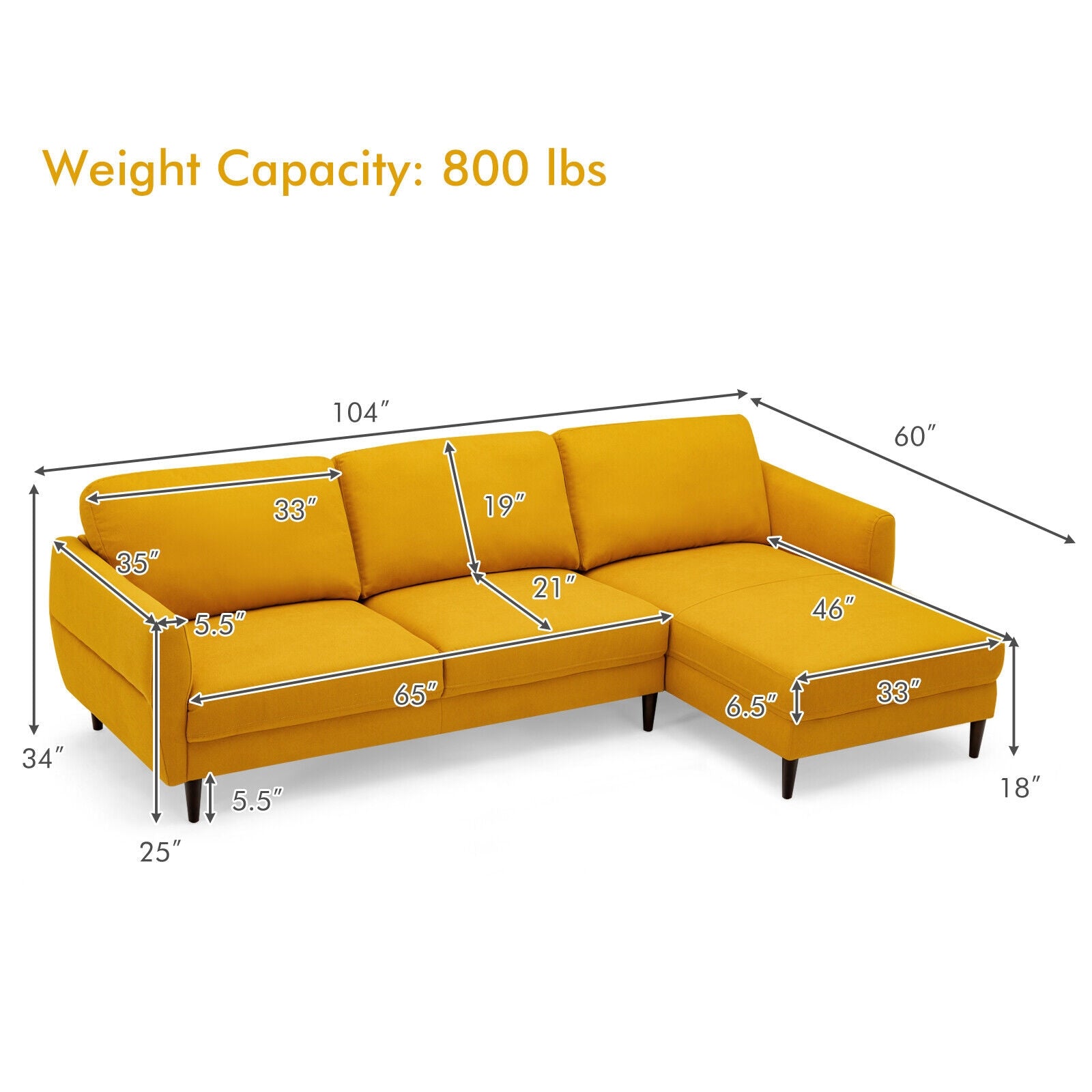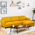 L-Shaped Fabric Sectional Sofa with Chaise Lounge and Solid Wood Legs-Yellow