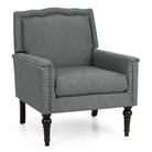 Mid-century Modern Armchair Linen Fabric Upholstered Accent Chair with Cushion-Gray