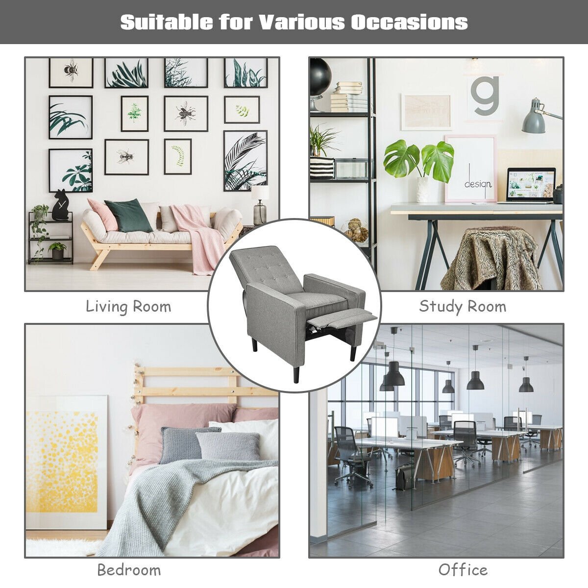 - Elegant Style for Versatility: Clean line and button-tufted design make the recliner look sophisticated and elegant bringing charm to your room. With exquisite workmanship it can blend perfectly into any decor. It is perfect for bedroom living room study balcony office etc.