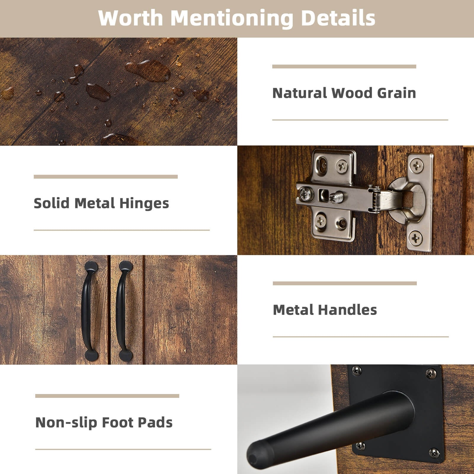 Built for Durability and Stability: This floor cabinet is made of thick engineered wood for extended durability. Equipped with anti-toppling device the storage cabinet can be attached to the wall to prevent wobbling or tipping over. Supported by 4 stable support legs the 2-door storage cabinet is not easy to wobble or creak.