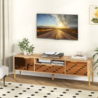 Mirrored TV Stand for TV up to 65 Inch with Spacious Tabletop and 2 Storage Cabinets-Natural