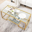 Modern 2-Tier Rectangular Coffee Table with Glass Table Top-Golden