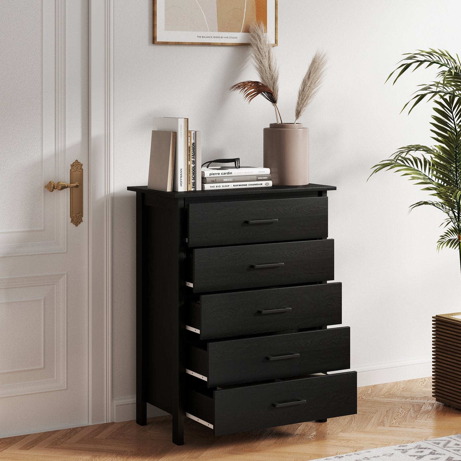 Modern 5-Drawer Multipurpose Chest Dresser with Metal Handles-Black