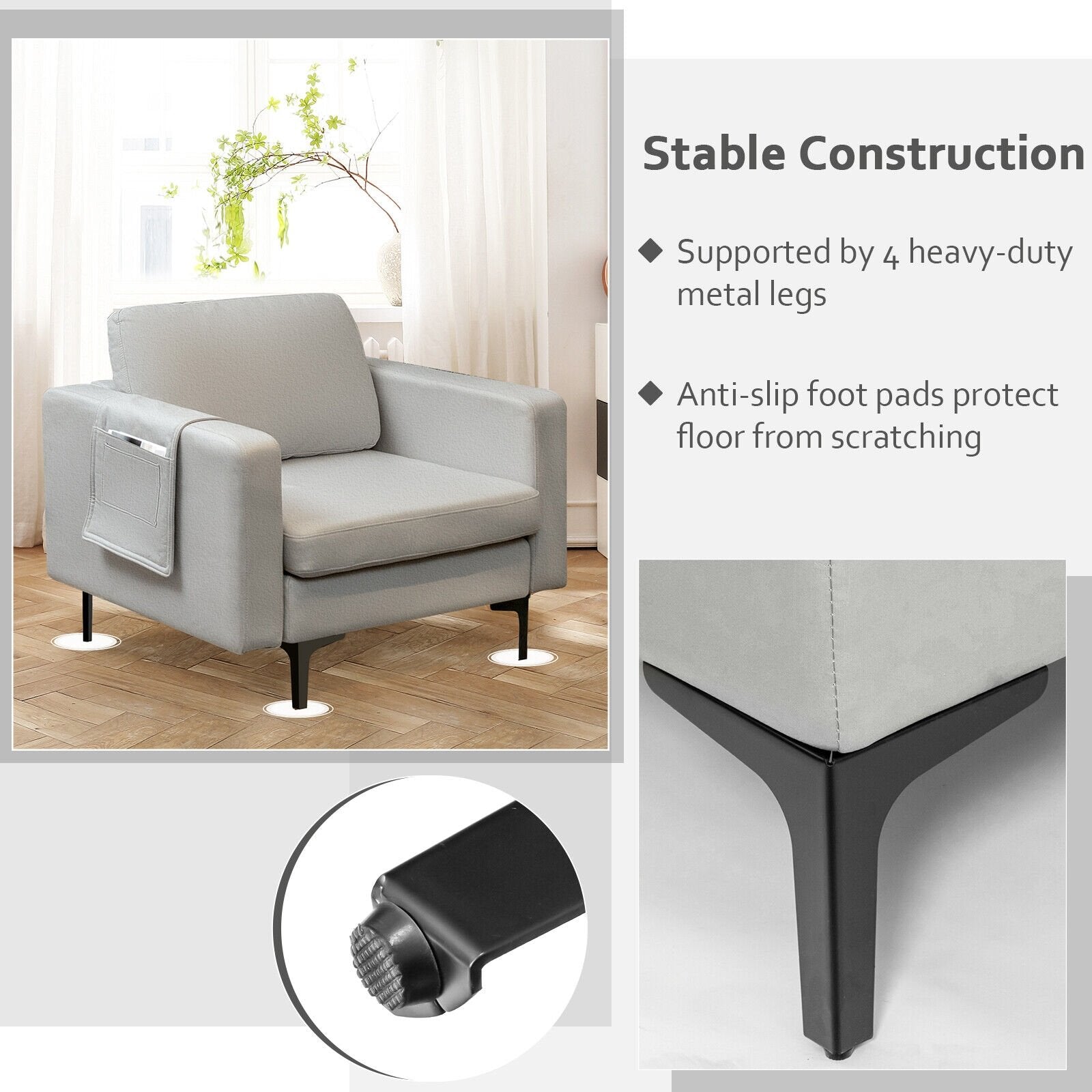 Modern Accent Armchair with Side Storage Pocket-Light Gray