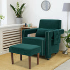 Modern Berber Fleece Single Sofa Chair with Ottoman and Waist Pillow-Green