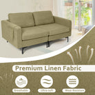 The armrest caddy holder keeps magazines and books close at hand so that you can read them whenever you want to wind down. The ergonomically curved backrest soft back cushions and thick padded seat cushions contribute to a comfortable sitting experience. The linen fabric (Gray/Orange/Green)/leathaire fabric (Blue) is skin-friendly in texture and offers you relaxing feeling. Due to the high-density sponge and pressure-disperse elasticity system the seat can resist deformation in a better way. Moreover the metal legs and steel frame boast outstanding sturdiness and endow the sofa couch with 1320 lbs weight capacity in total.