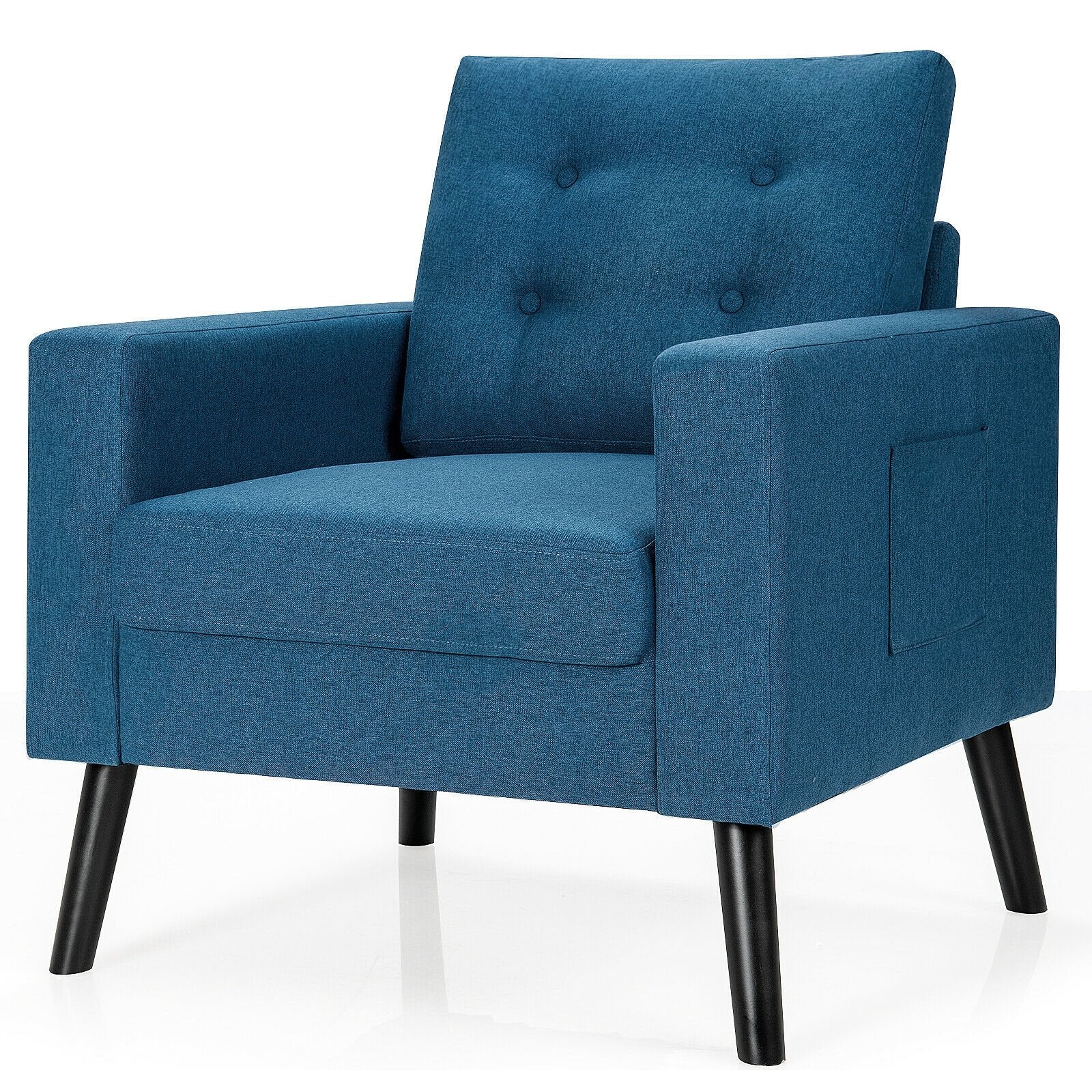 Modern Tufted Accent Chair w/ Rubber Wood Legs-Blue