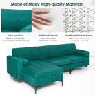 Covered with peacock blue suede fabric this modular sofa couch is padded with high-quality sponge to ensure utmost comfort. Distributed elasticity system keeps the spring strong and durable. Besides it features soft back pillow thick seat cushion and side bolster. What’s more side pocket offers extra storage. Each seat can hold up to 660 lbs which can well support kids and adults. Solid frame metal legs and anti-skid foot pads keep it durable and sturdy. With the modular sofa couch you can comfortably and safely watch TV read books study or work.