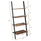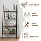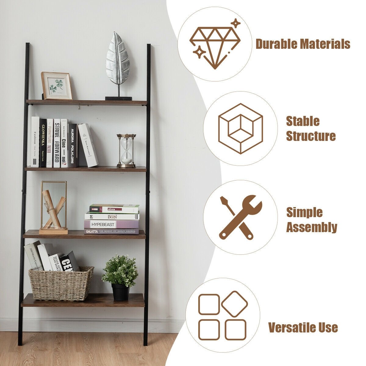 Multipurpose 4-Tier Industrial Leaning Wall Bookcase with Metal Frame-Brown