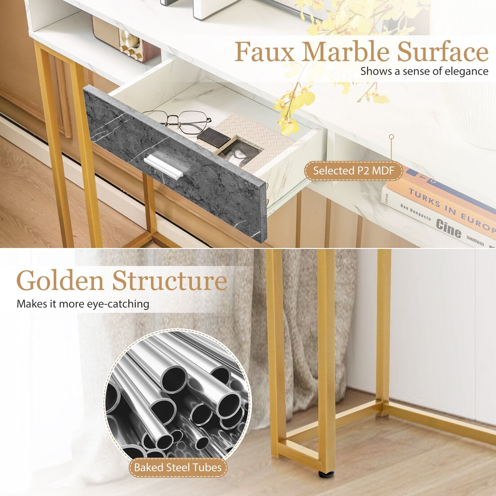 Modern and Classic Appearance: Designed in simple colors white gold and black the narrow console table shows a minimalist style. However it also comes with impressive and exquisite details. For example except for the all-gold steel frame other panels are decorated with unique faux marble textures which looks very deluxe.