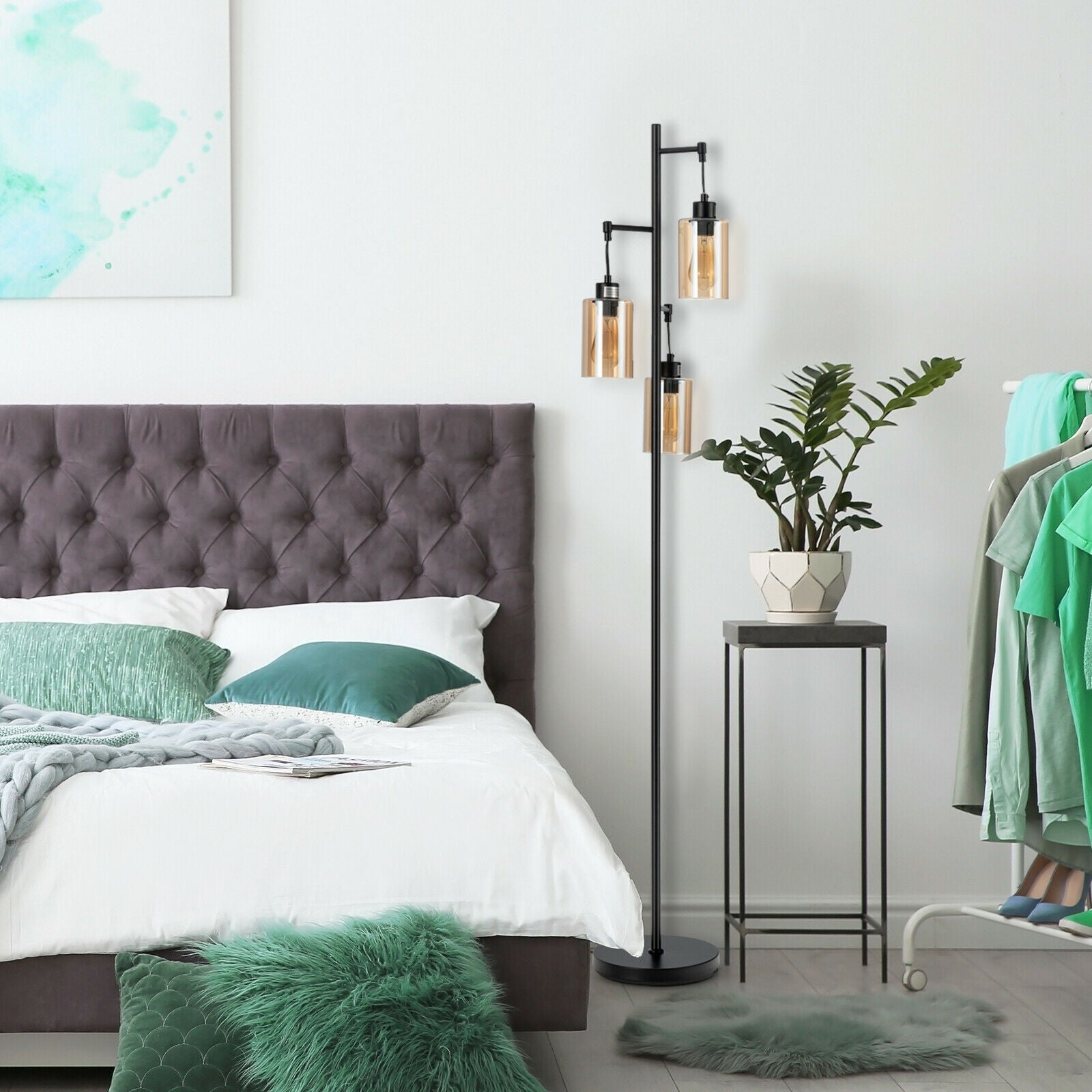 Amber Glass Lampshade: This freestanding floor lamp comes with 3 glass made lampshades which is able to create a warm and cozy atmosphere for you. Besides the lampshades made of strong amber glass material can perfectly protect the bulbs (not included) and prevent the direct light from hurting your eyes.