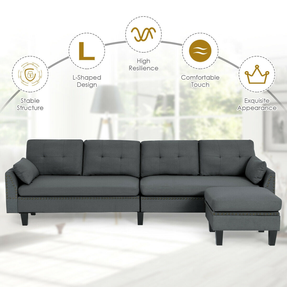 Reversible Sectional Sofa Couch L-Shaped Sofa Couch with Ottoman-Gray