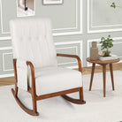 Rocking Chair with Ottoman and Solid Rubber Wood Frame and Padded Cushion-Beige