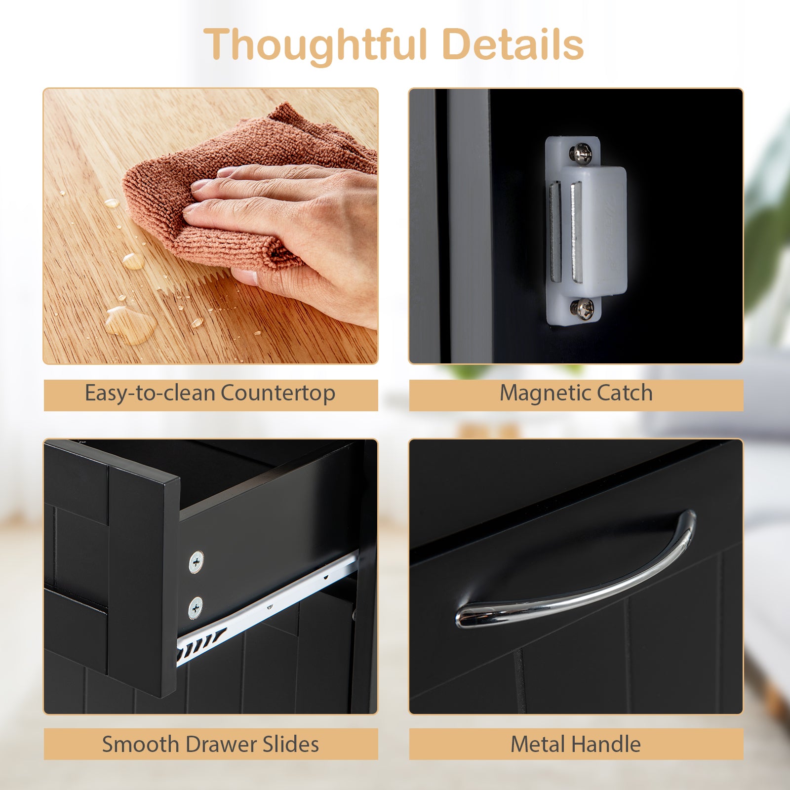 Thoughtful Details: The easy-to-clean countertop makes maintenance a breeze. Fitted with magnetic catch it is smooth and mute to open the door. Just feel free to grab the metal slides and handle to pull out the drawer.