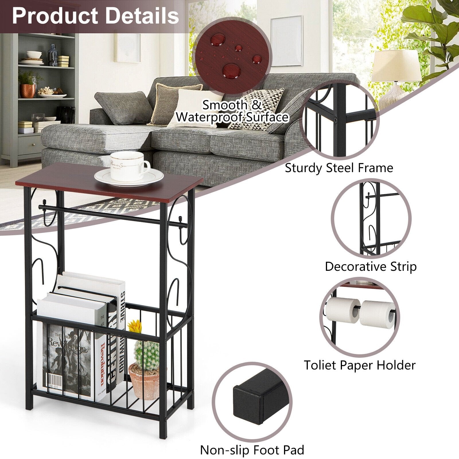 Functional and Removable Hanging Rack: This end table is built with a hanging rack which can be used a toilet paper holder making this end table perfect to use beside a toilet. The hanging rack is easily removable without tools which is convenient for toilet paper replacement. And you can use without the hanging rack according to your favorite.