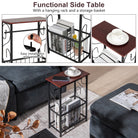 Side Sofa Narrow Table with Removable Paper Holder for Living Room-Brown