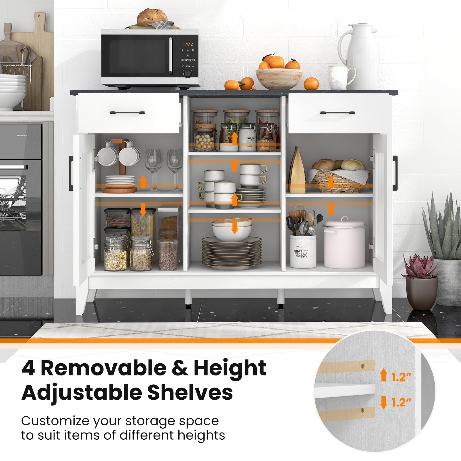 Sideboard Buffet Cabinet with 2 Drawers and 4 Adjustable Shelves-White