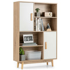 It provides concealed and open display storage options. And you will find it seamlessly blending into your living room bedroom and office with a suitable style. This storage cabinet expands its functionality by serving as a cupboard a sideboard a bookcase and a room divider. And the rubber wood legs with footpads stably support the cabinet. With the anti-tipping designs this cabinet is safe around your kids or pets. Besides it is easy to assemble with detailed instructions.