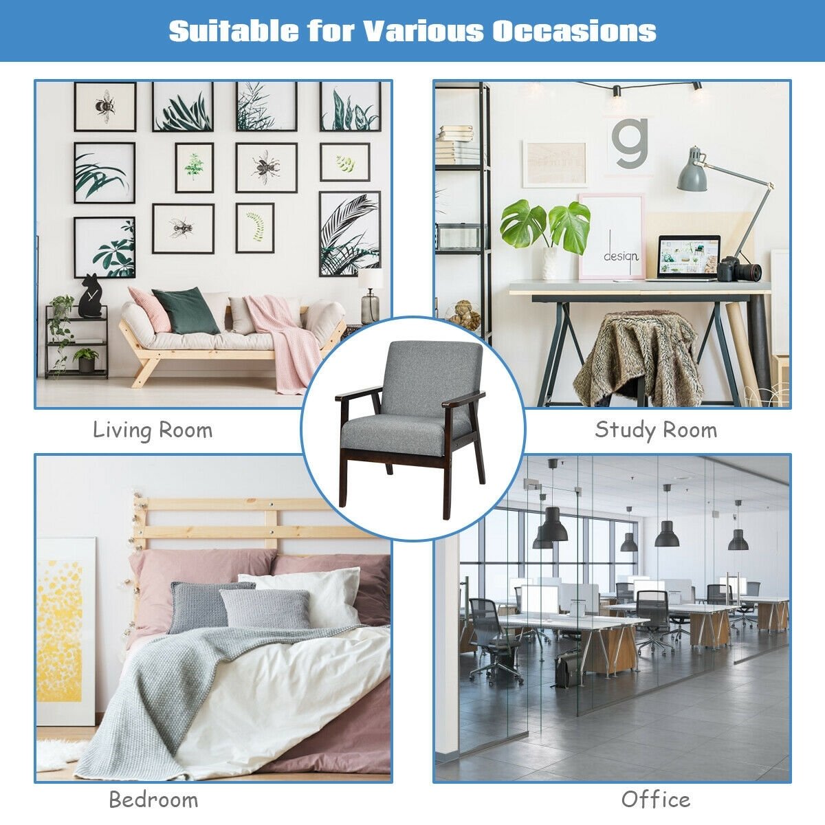 Solid Rubber Wood Fabric Accent Armchair for Living Room-Gray