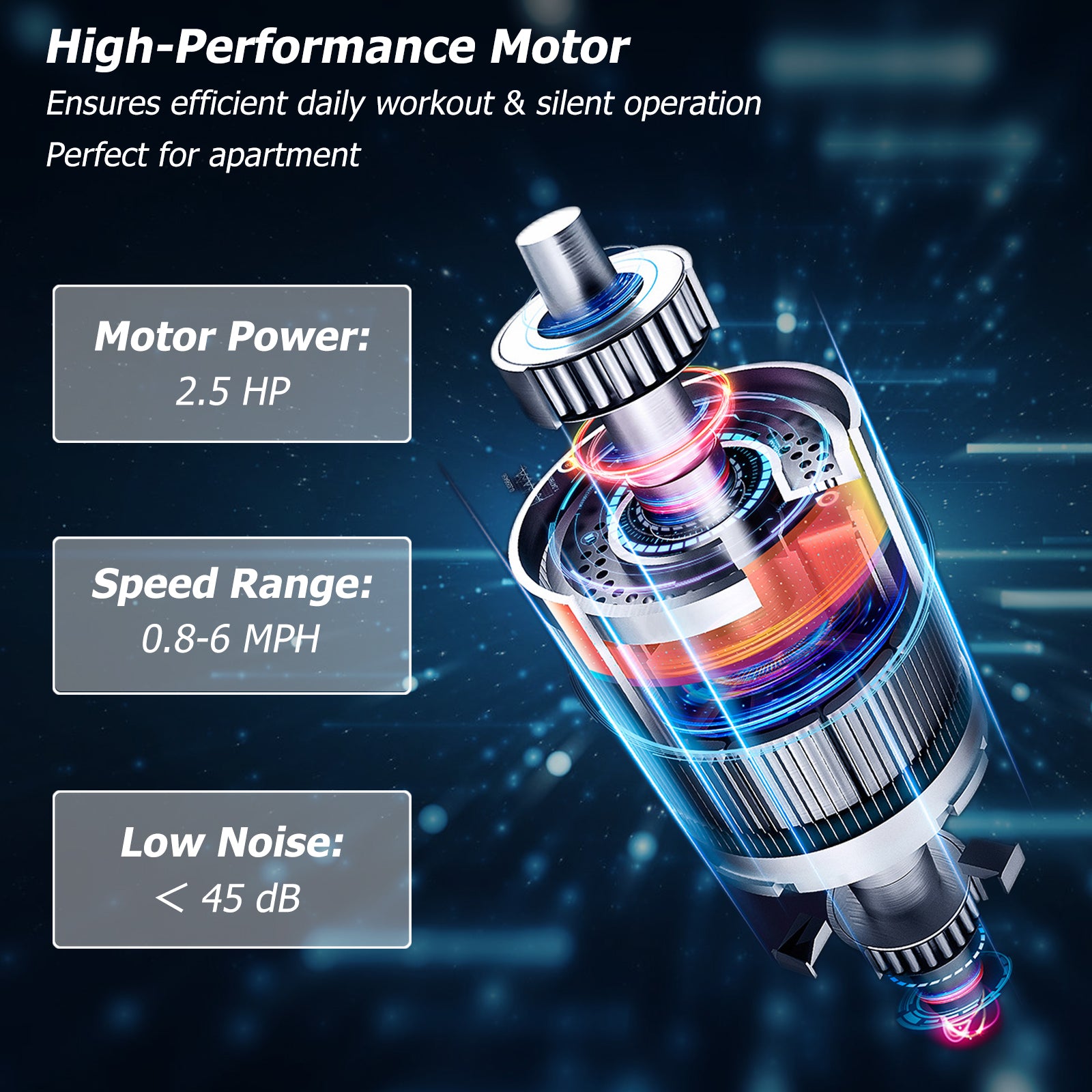 0.8-6 MPH Speed Range: The powerful 2.5HP motor not only endows this walking pad with <45dB low-noise operation to avoid disturbing others but also makes it has 0.8-6 MPH speed range for different exercises such as walking (0.8-2 MPH) jogging (2-4 MPH) and running (4-6 MPH).
