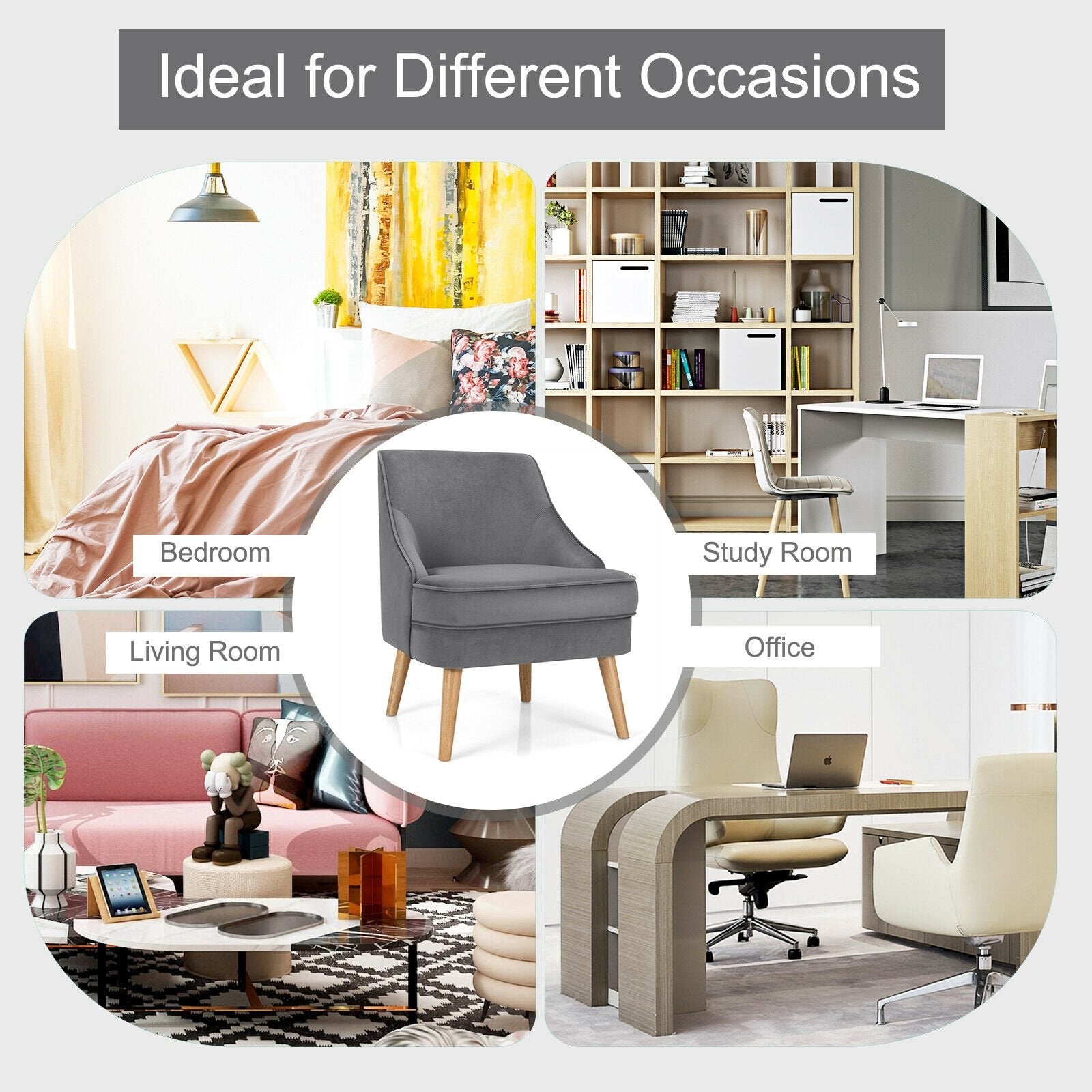Mid Century Velvet Accent Chair with Rubber Wood Legs for Bedroom-Gray
