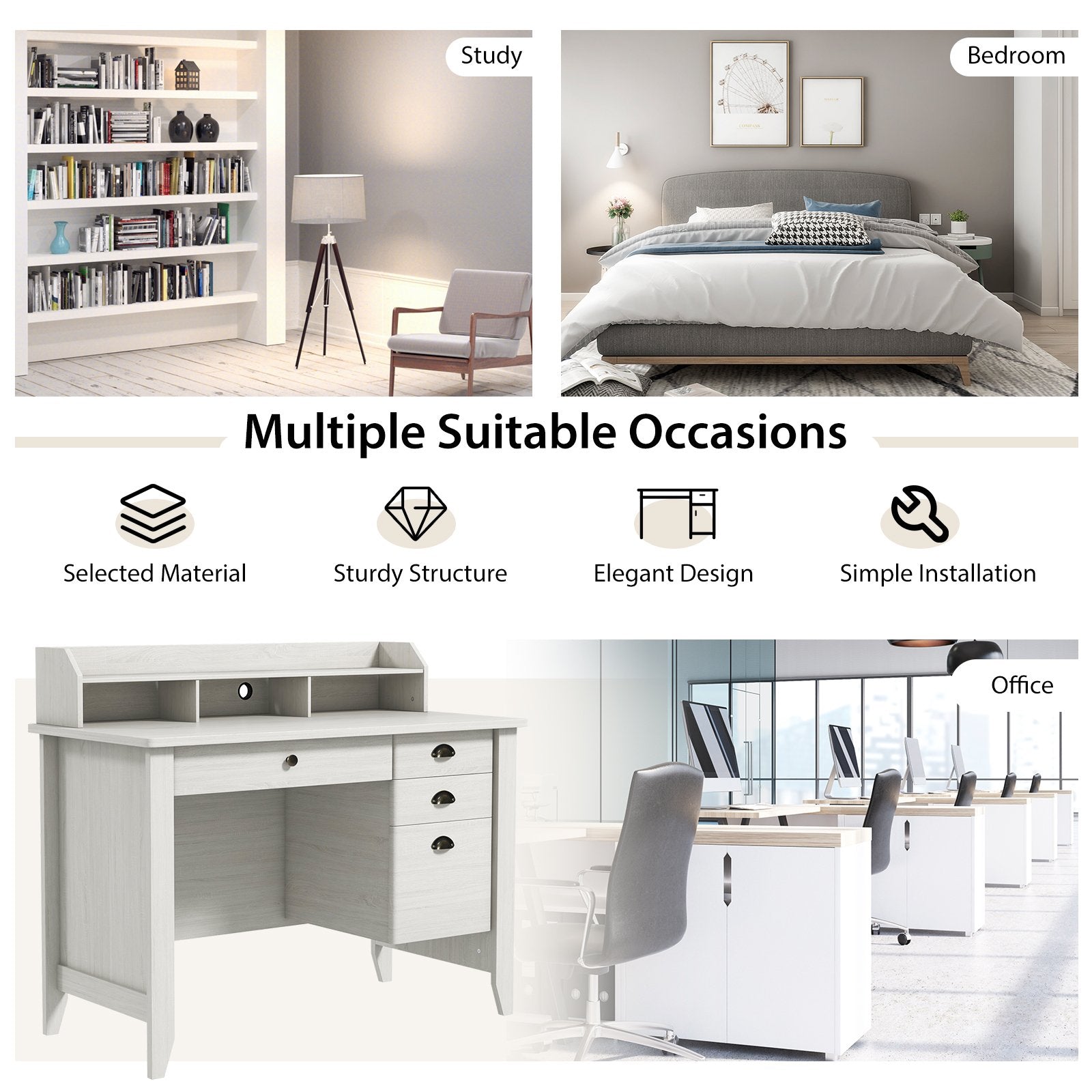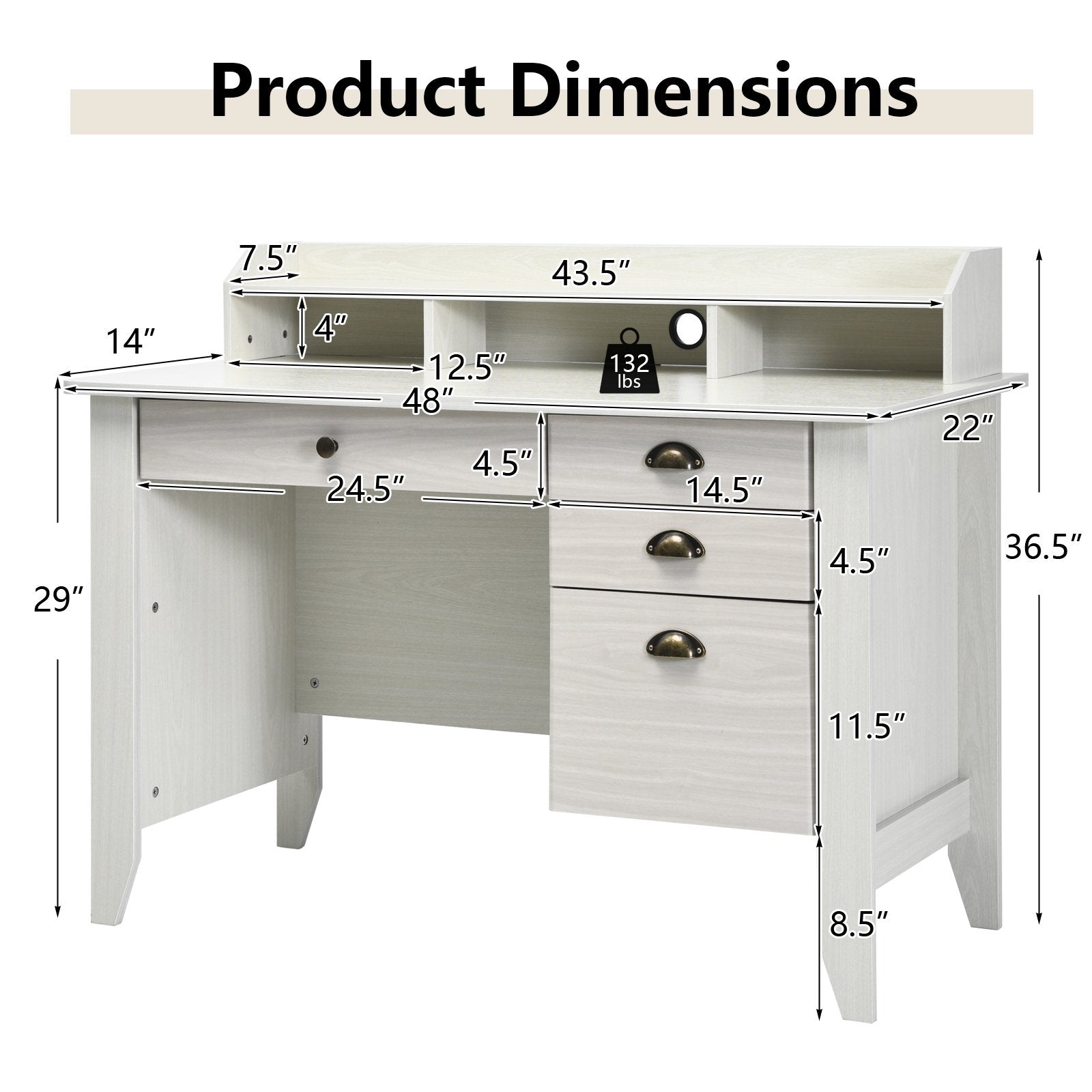 Vintage Computer Desk with Storage Shelves and 4 Drawers-White