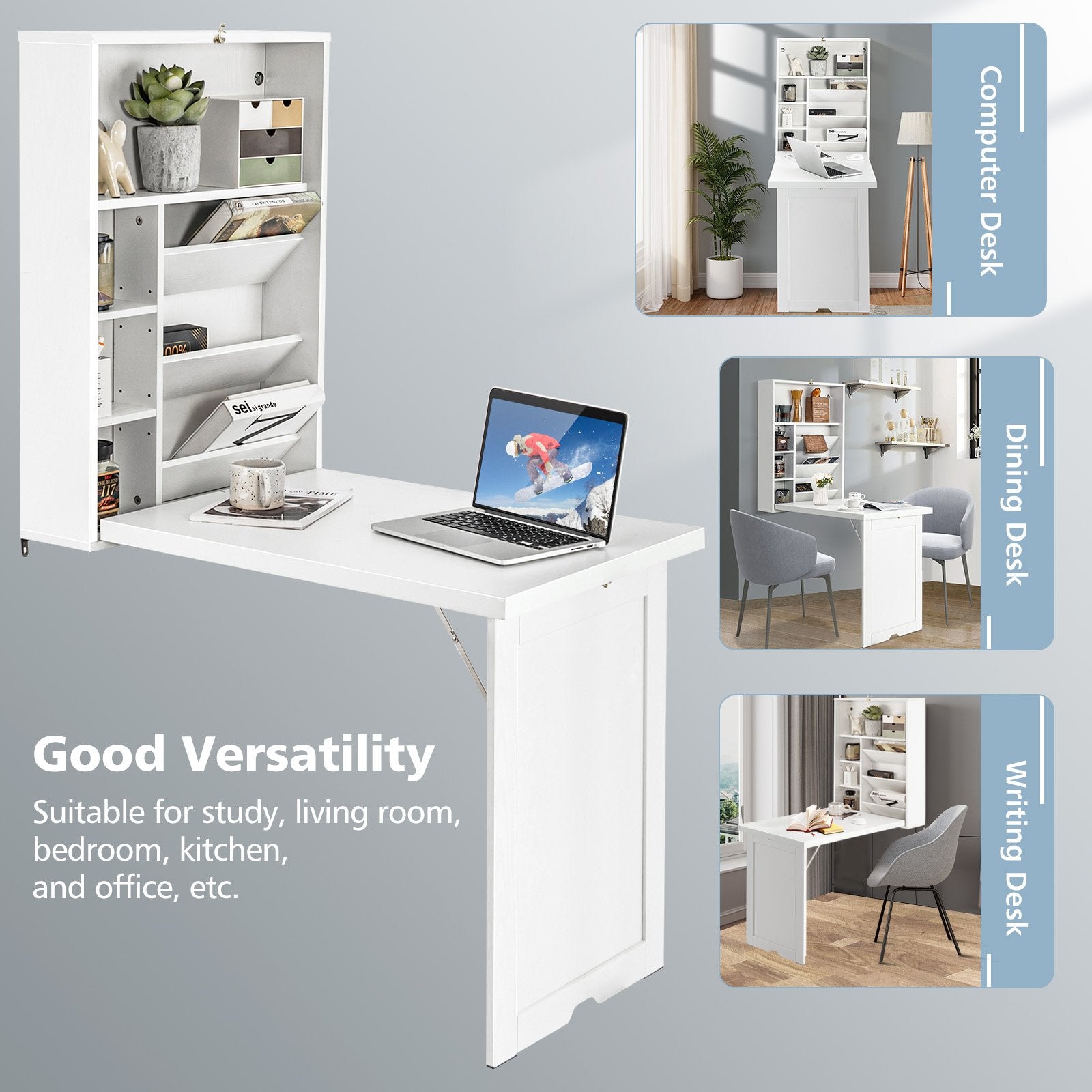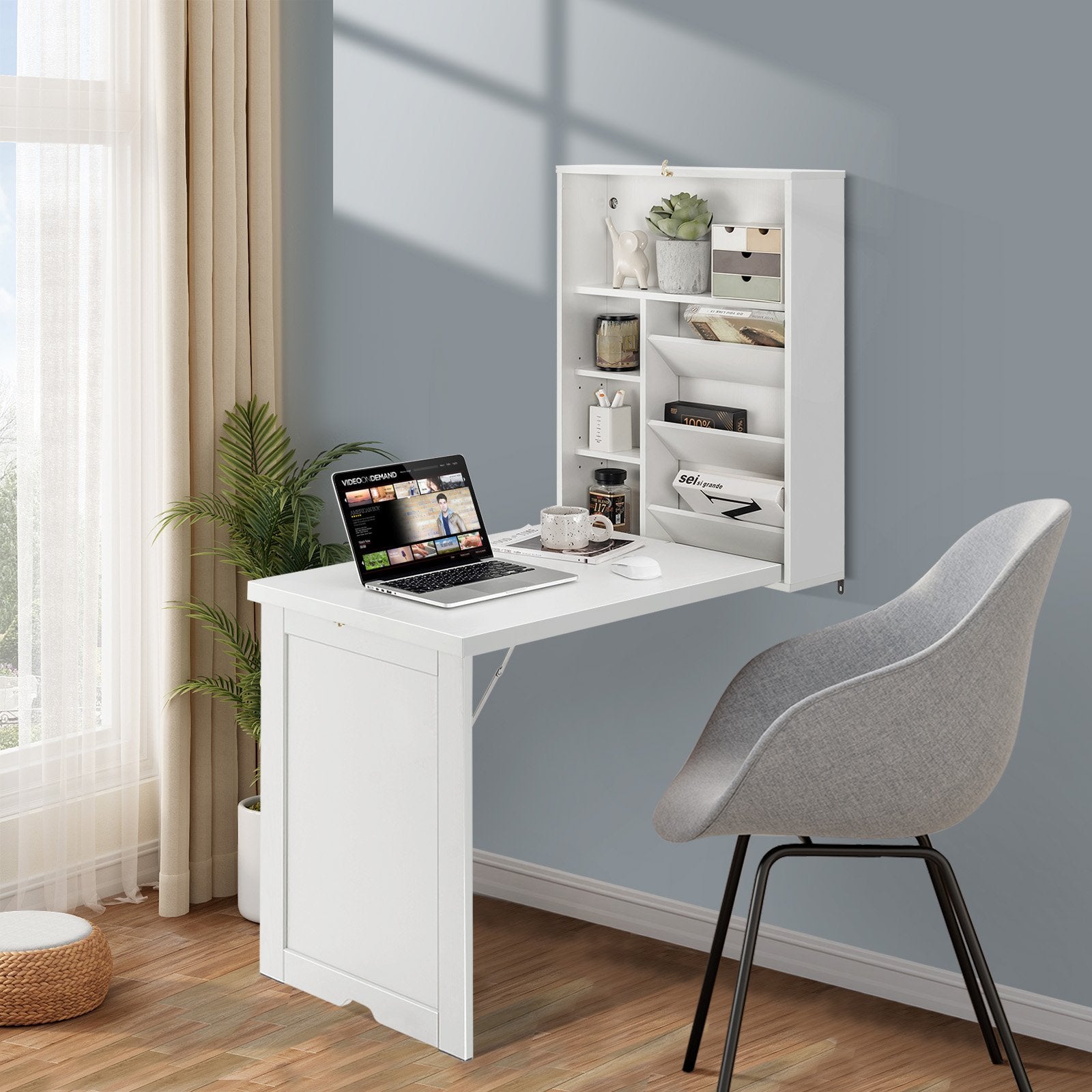 Wall Mounted Fold-Out Convertible Floating Desk Space Saver-White