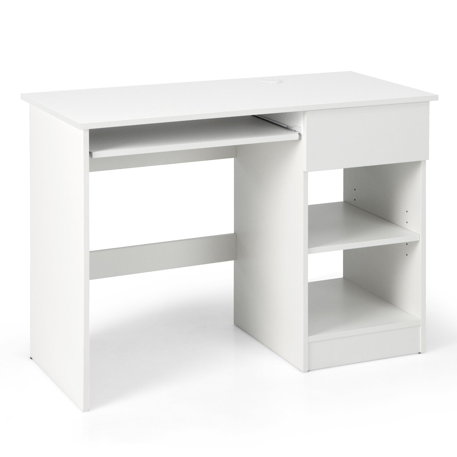 Modern Appearance and Wide Application: The sleek lines and white finish make the writing table an ideal choice for home and office. What’s more the PC table also comes with stickers to cover unsightly screw holes for a clean look. And with practical functions the unit can be used as a work table a student’s desk and even a vanity table.