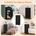 Wooden Storage Free-Standing Floor Cabinet with Drawer and Shelf-Brown